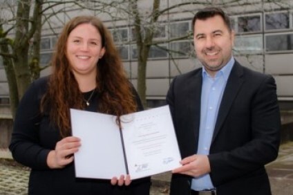 Zum siebzehnten Mal wurde auf der Mitgliederversammlung am 23. November 2021 der Stiftungspreis verliehen. Den Preis erhielt Frau Dr. Dagmar Rückle für ihre Doktorarbeit zum Thema "Das Oxidationsverhalten und die elektrochemische Charakterisierung von Stählen in Nitratschmelzen bei hohen Temperaturen". Die Urkundenübergabe erfolgte zu einem späteren Zeitrpunkt in Stuttgart durch Herrn Dr. Rauscher.