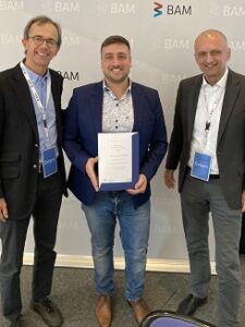 Hr. Prof. Dr.-Ing. Ralf Feser und Hr. Prof. Dr.-Ing. Wolfram Fürbeth mit Hr. Martinelli-Orlando bei der Preisverleihung
